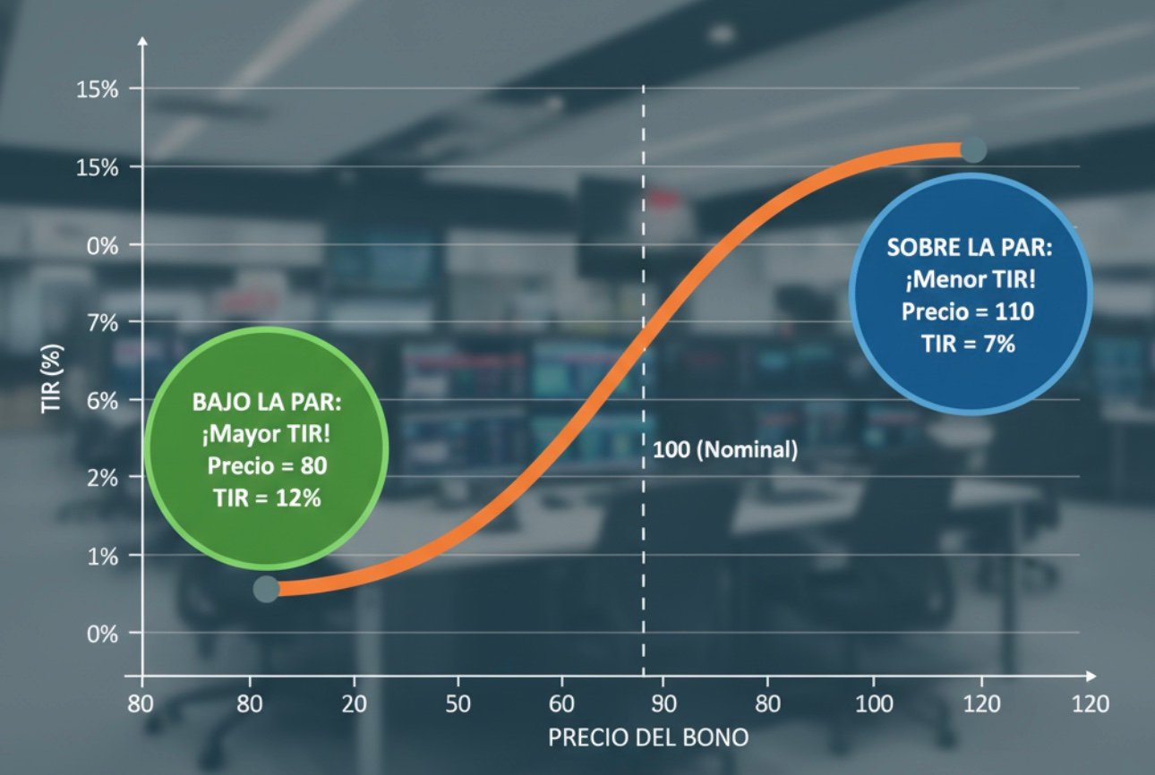 La relación más importante que debes entender es que el precio de un bono y su TIR se mueven en direcciones opuestas.